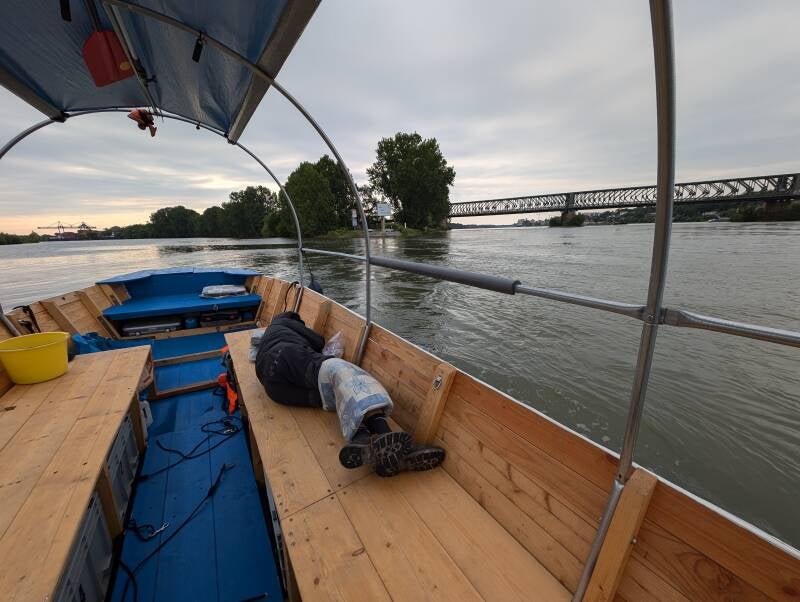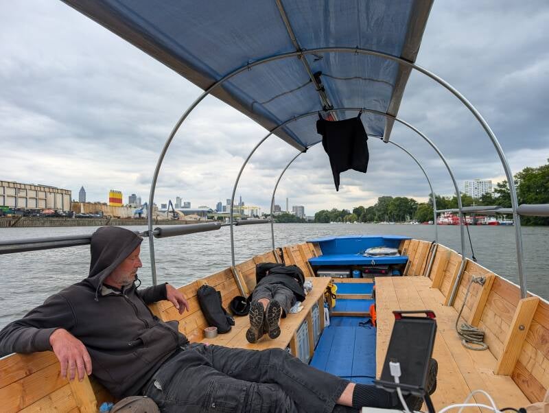 Waking up before 6 am. Hundreds of Mosquitoes, but otherwise a good night. And off we to, we should leave the Rhine and enter the Main in about 2h.