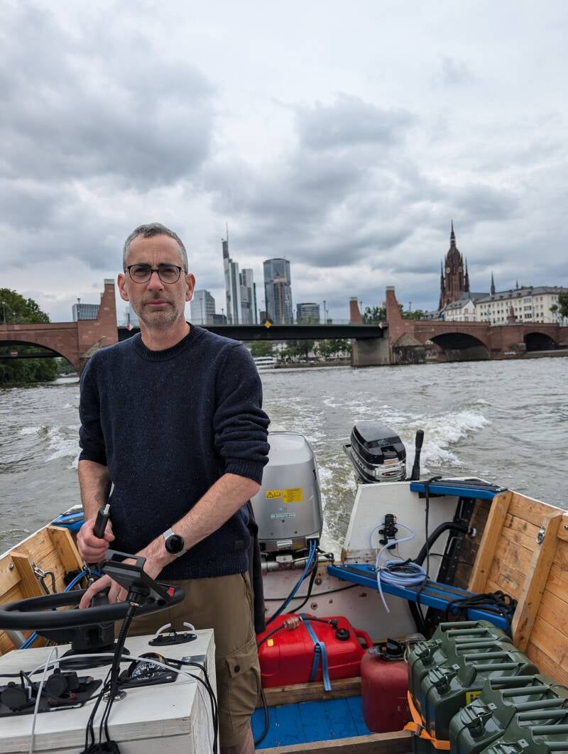 In Frankfort, we refill our supplies: food for us, 80 liter gasoline for Emily.
