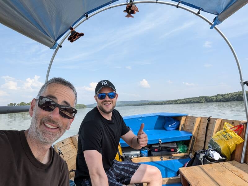 Auf dem Weg zurück nehmen wir noch ein Bad in der Donau. Wir haben Spass, die Mücken noch mehr. Auch auf dem Boot werden wir im Sekundentakt gestochen, ansonsten ist es recht nett.