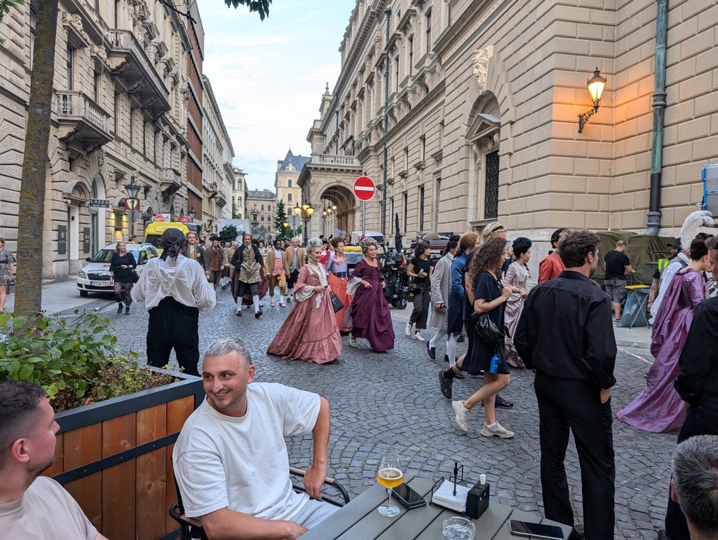 Hinter der Oper drehen sie gerade einen Film, wir gucken eine Weile zu.