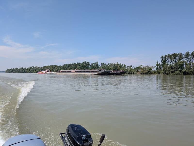 Kurz darauf werden wir von einem Kroatischen Polizeiboot gestoppt. Sie kontrollieren unsere Pässe und klären uns auf, dass wir nicht auf kroatischer Seite halten dürfen, da wir in Serbien angemeldet sind.