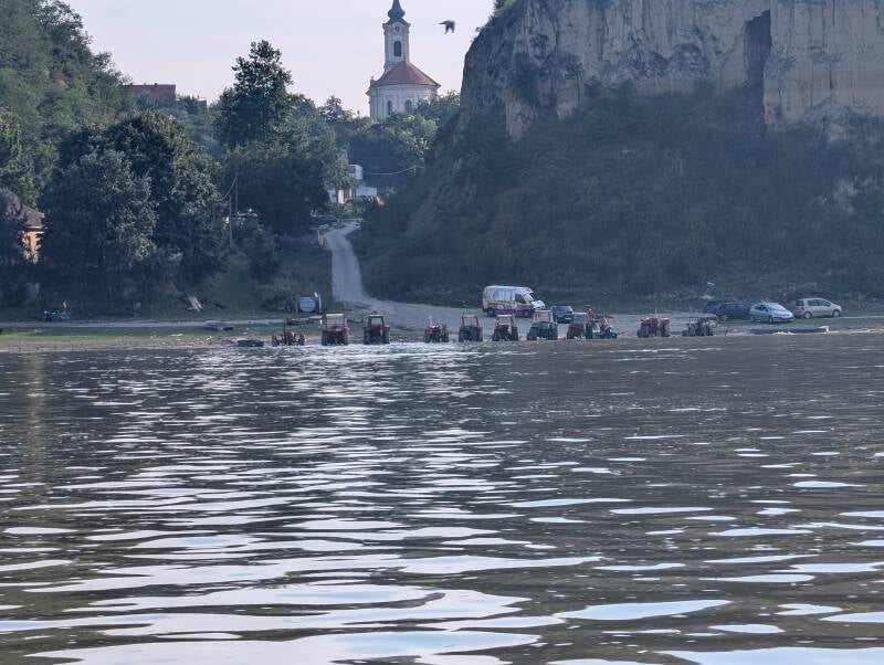 The gas station is close to this small harbor on the Serbian side, we don't have to carry our canisters too far.